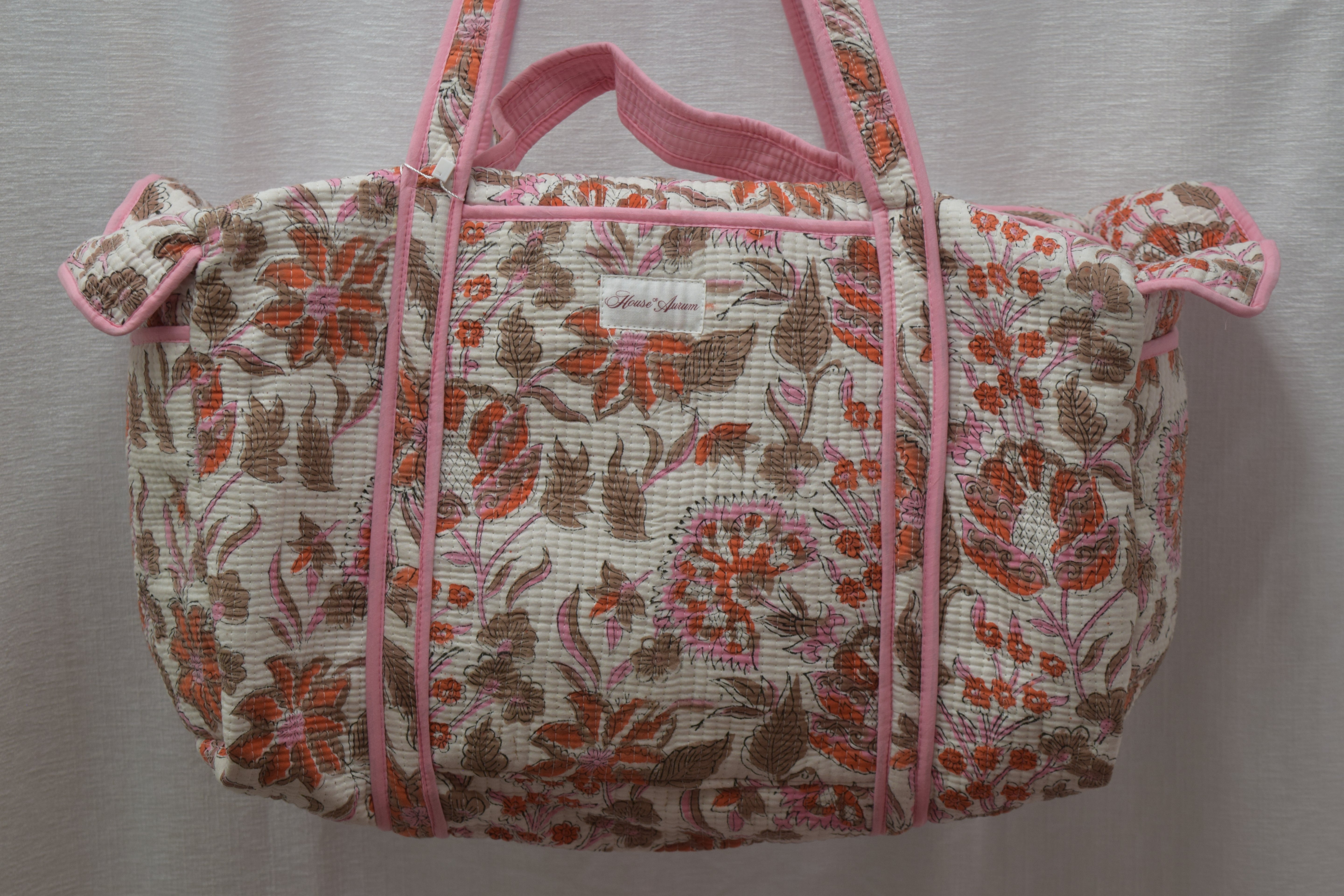 BEIGE PINK ORANGE FLORAL DUFFLE
