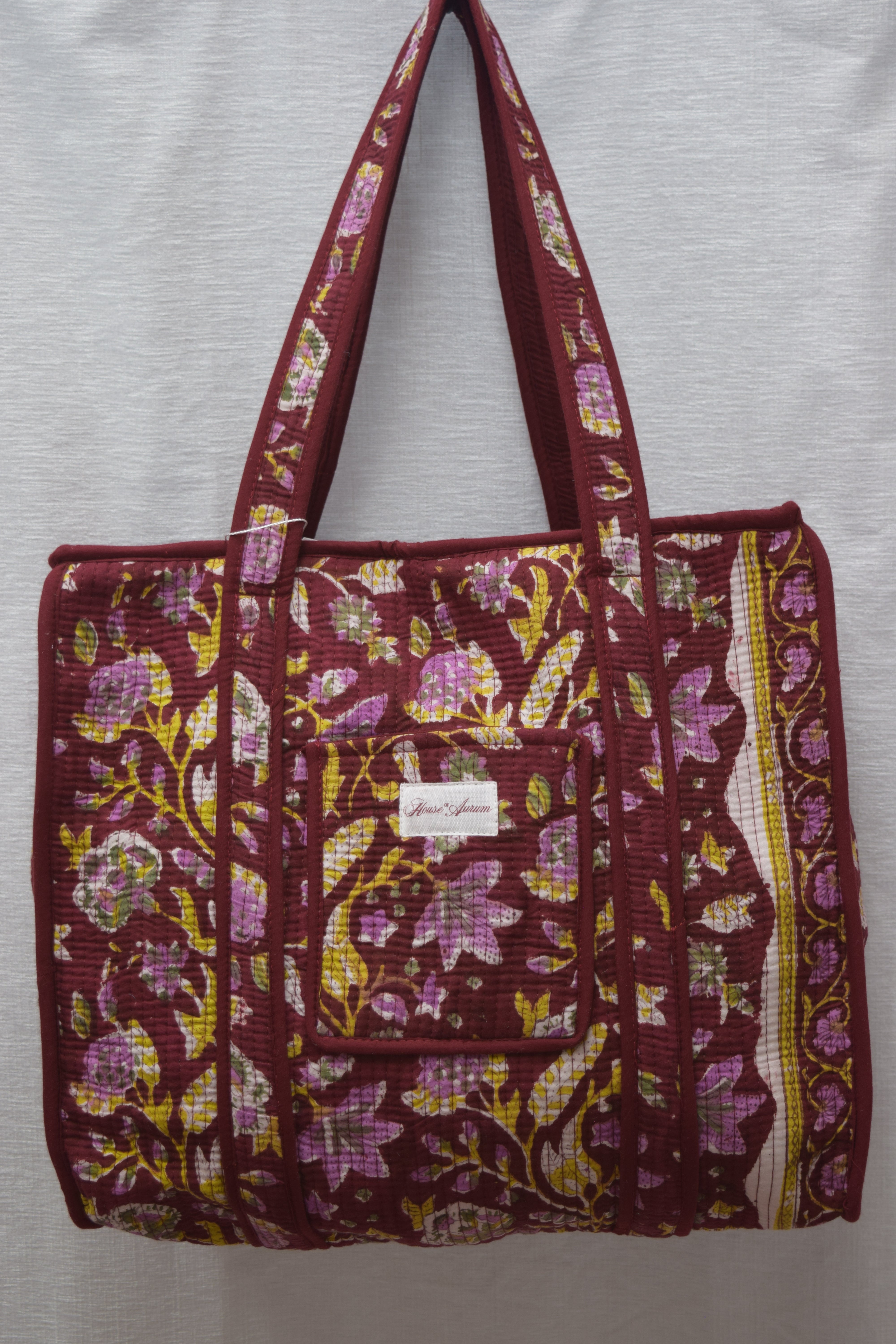 BURGUNDY FLORAL TOTE