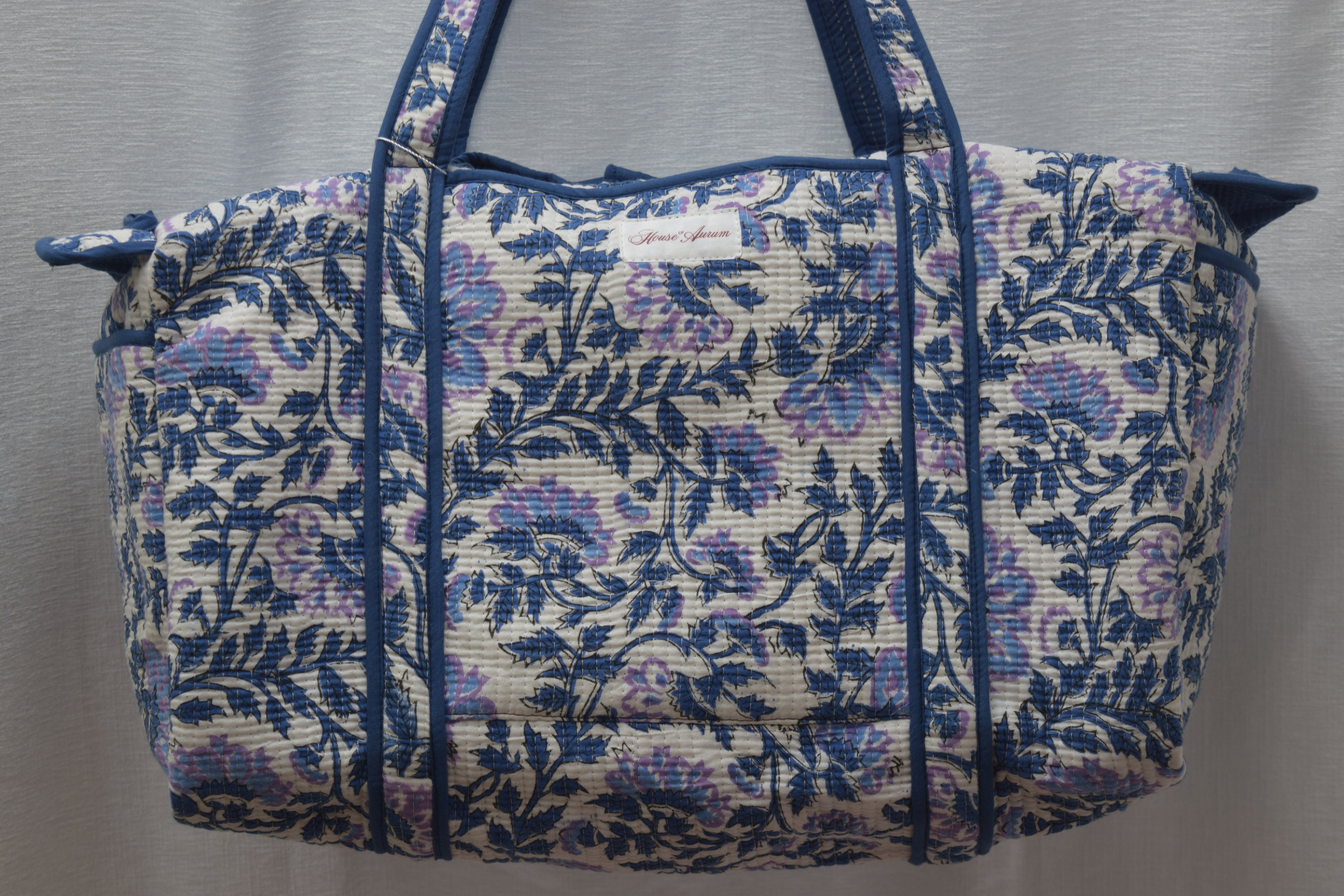 For the luxe traveler. These limited edition duffles are crafted in beautiful cotton, hand-block printed in India, and lined with double-layer cotton for added structure. They feel like a dream and carry like a statement. Travel chic, perfect for any overnight getaways!