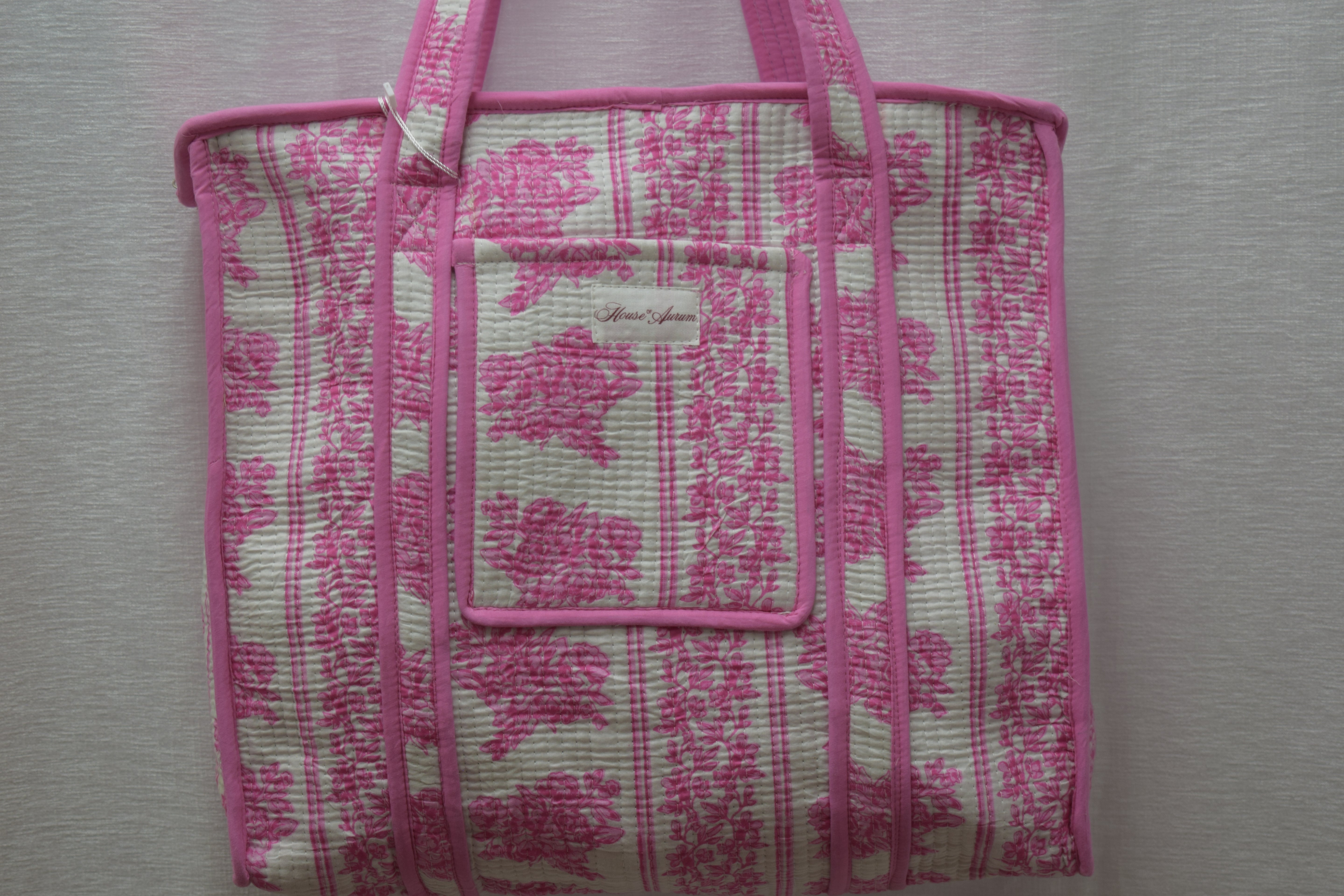 Everyday magic. Our block-printed totes are hand-sewn, double-lined with cotton, and designed to carry it all—books, diapers, laptops, lunch. You name it. Lightweight, soft-structured, and easy to fold down for travel or beach days. Each one is one-of-a-kind and made in teeny tiny batches