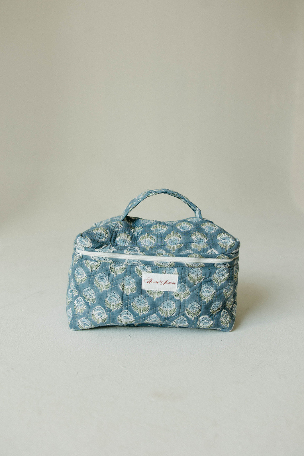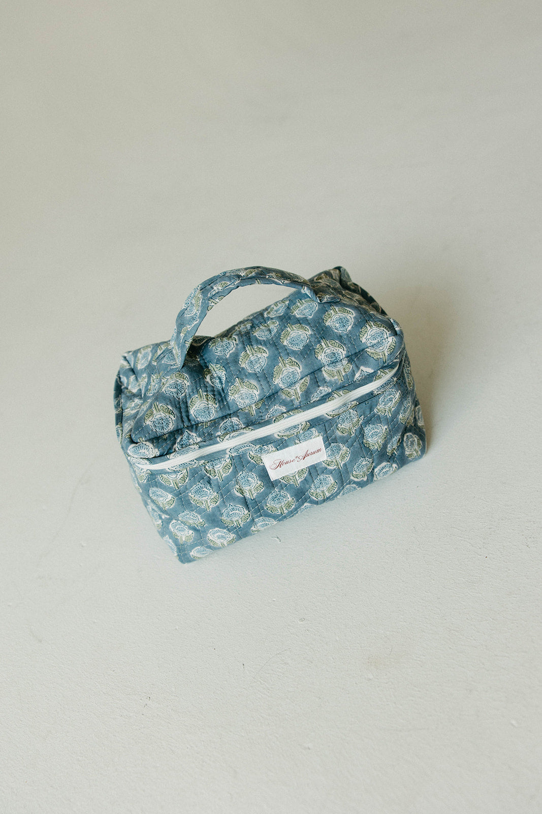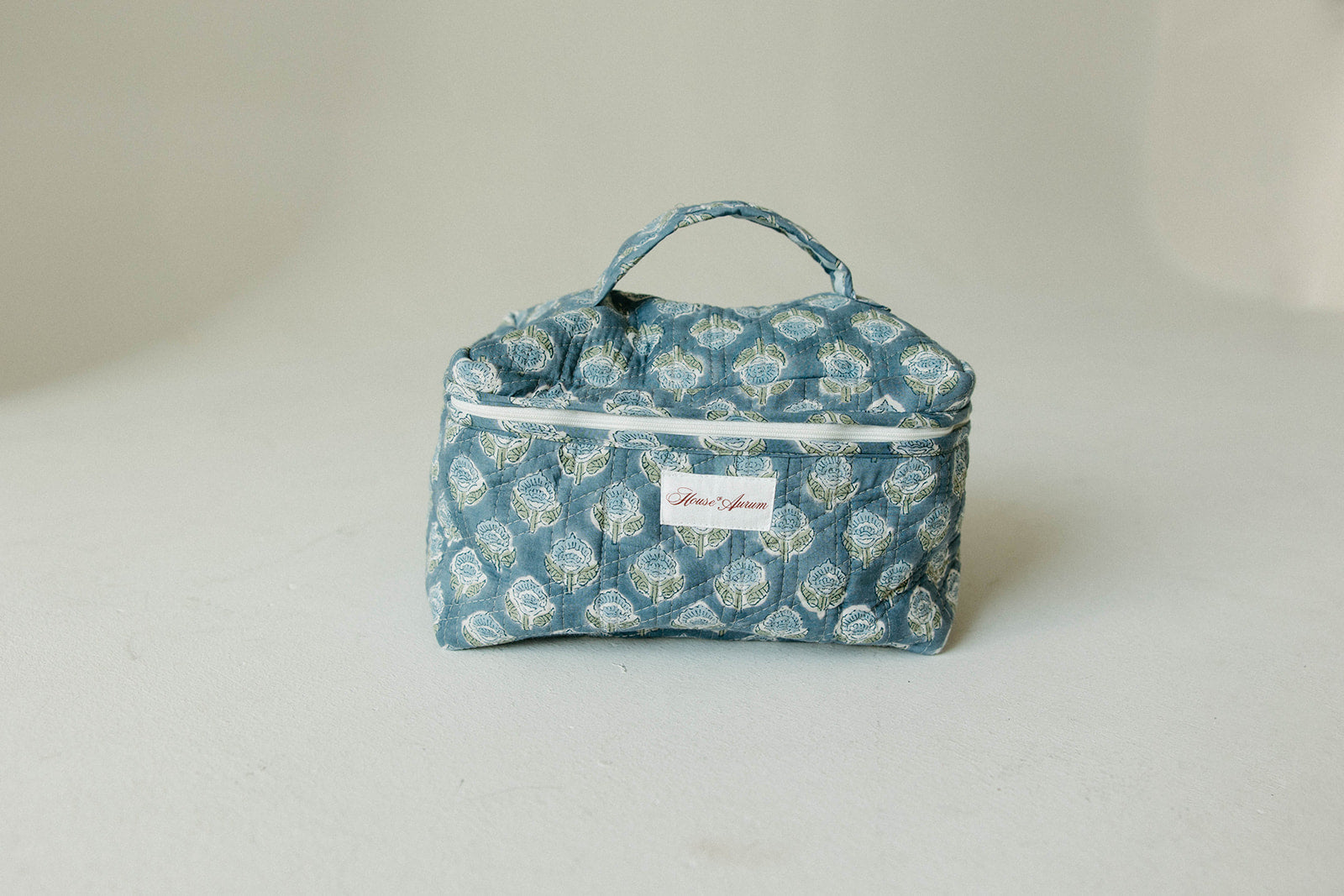 This spacious quilted vanity case is handcrafted using traditional block printing and made to hold full-size skincare, makeup, and beauty tools. Structured for easy organization and travel, it’s the elevated essential your bathroom counter, or suitcase has been waiting for.