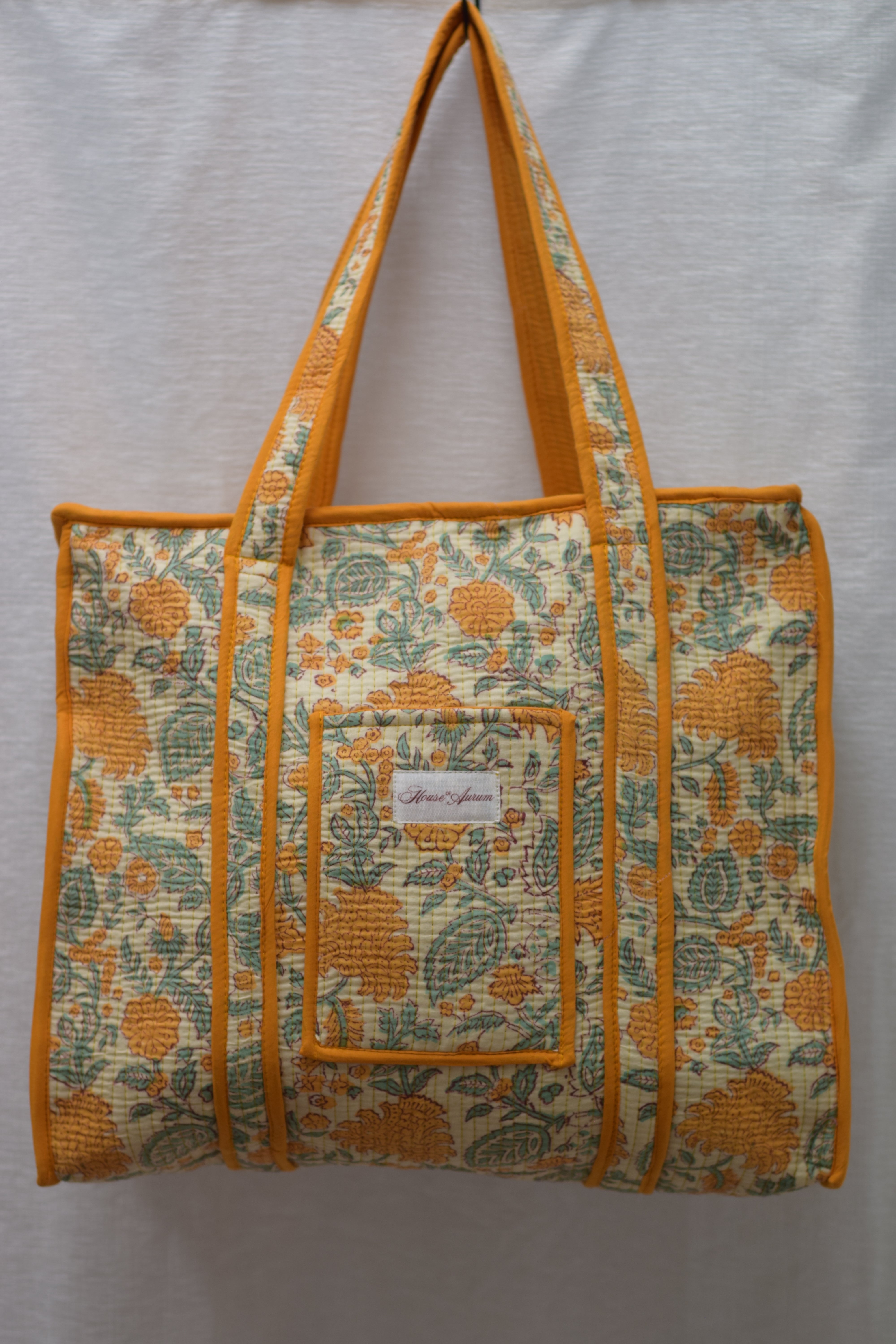 Everyday magic. Our block-printed totes are hand-sewn, double-lined with cotton, and designed to carry it all—books, diapers, laptops, lunch. You name it. Lightweight, soft-structured, and easy to fold down for travel or beach days. Each one is one-of-a-kind and made in teeny tiny batches