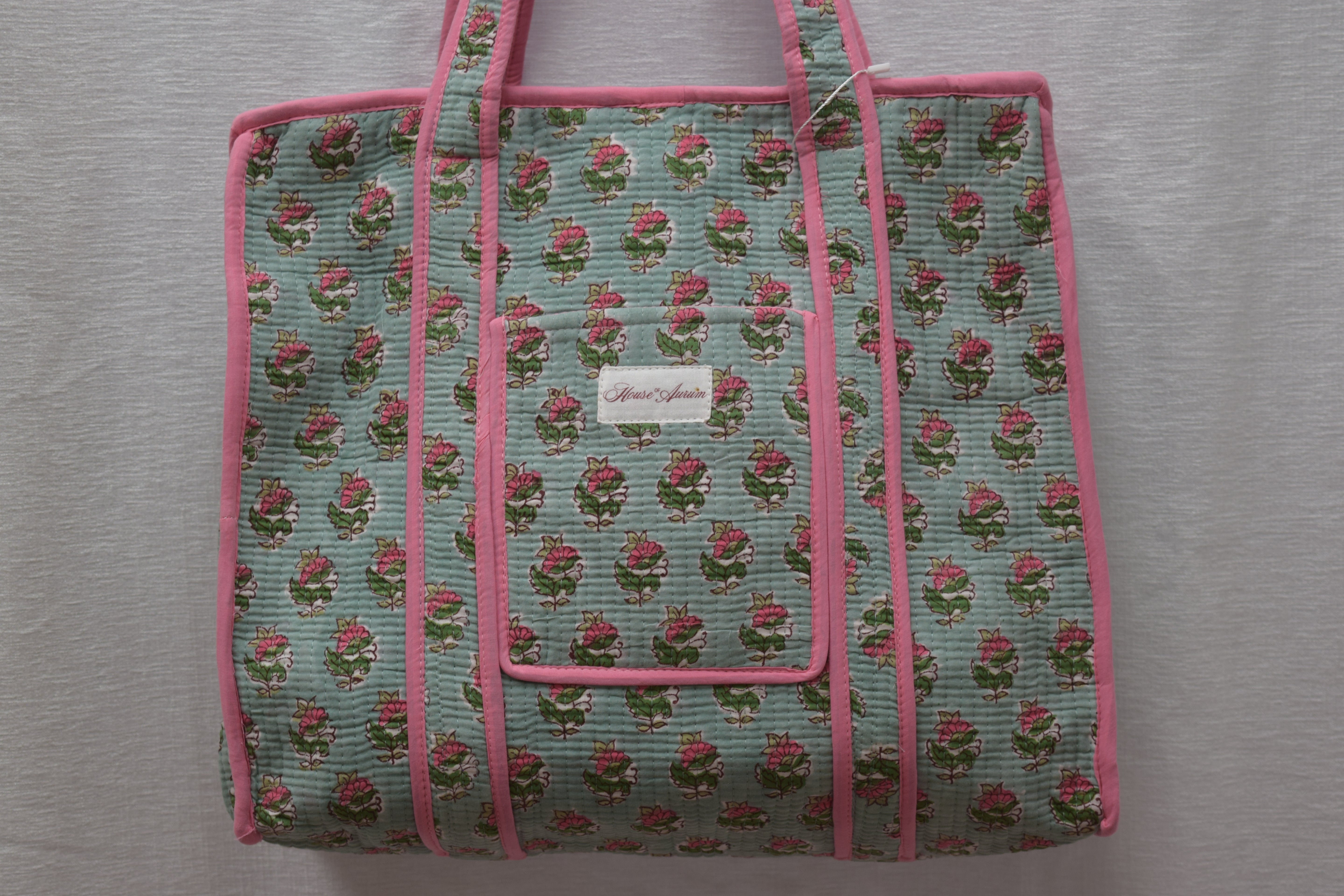 Everyday magic. Our block-printed totes are hand-sewn, double-lined with cotton, and designed to carry it all—books, diapers, laptops, lunch. You name it. Lightweight, soft-structured, and easy to fold down for travel or beach days. Each one is one-of-a-kind and made in teeny tiny batches