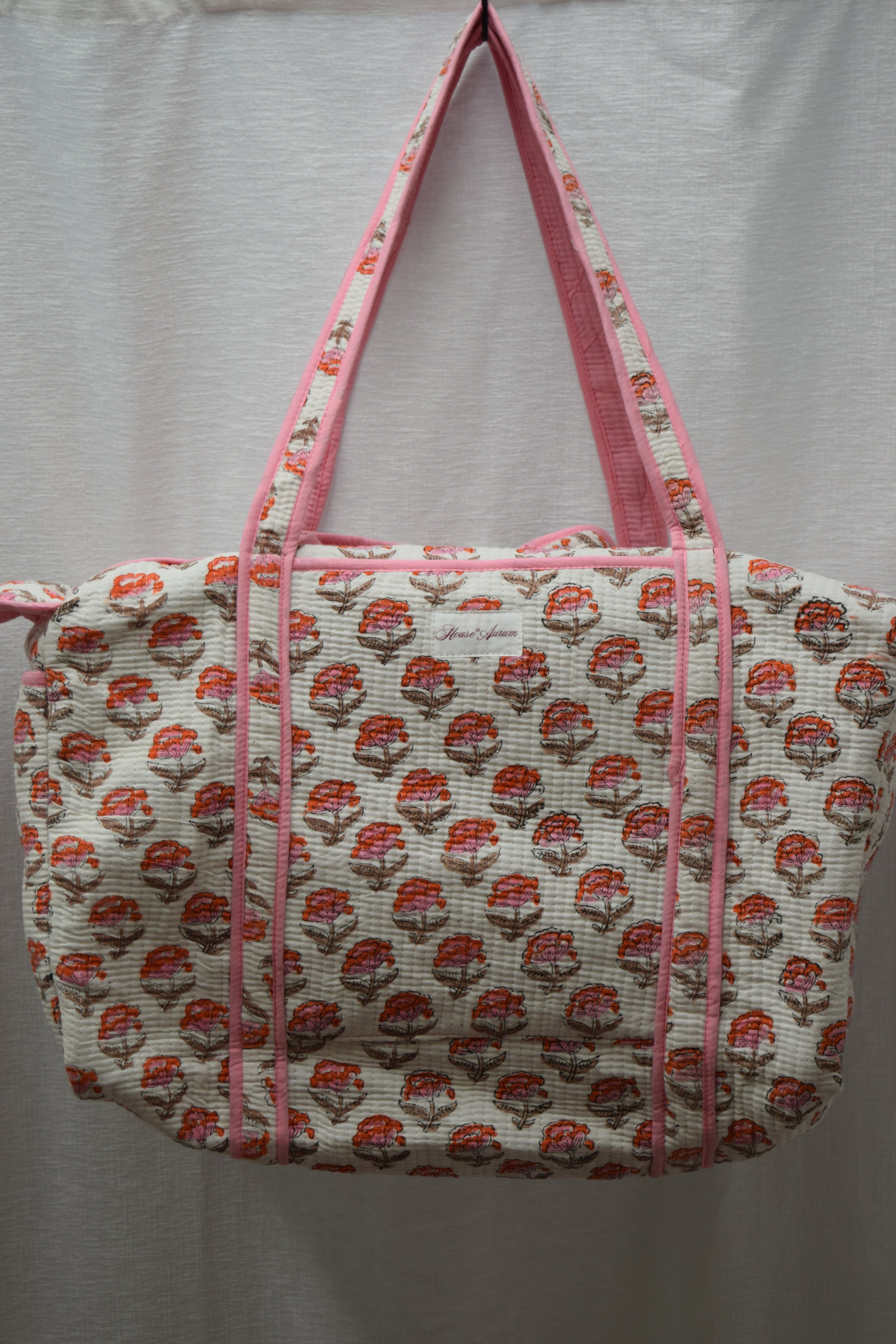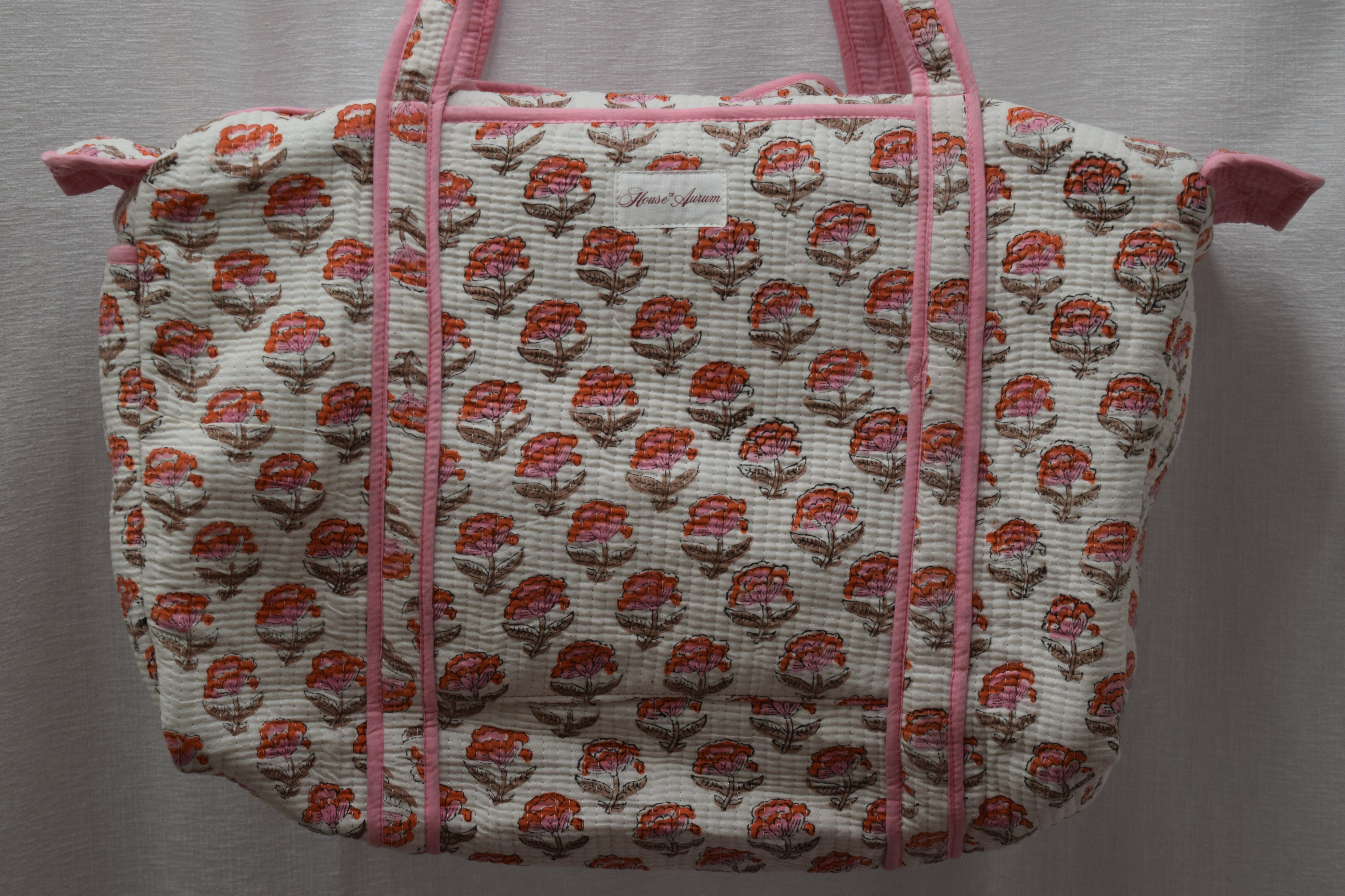 For the luxe traveler. These limited edition duffles are crafted in beautiful cotton, hand-block printed in India, and lined with double-layer cotton for added structure. They feel like a dream and carry like a statement. Travel chic, perfect for any overnight getaways!