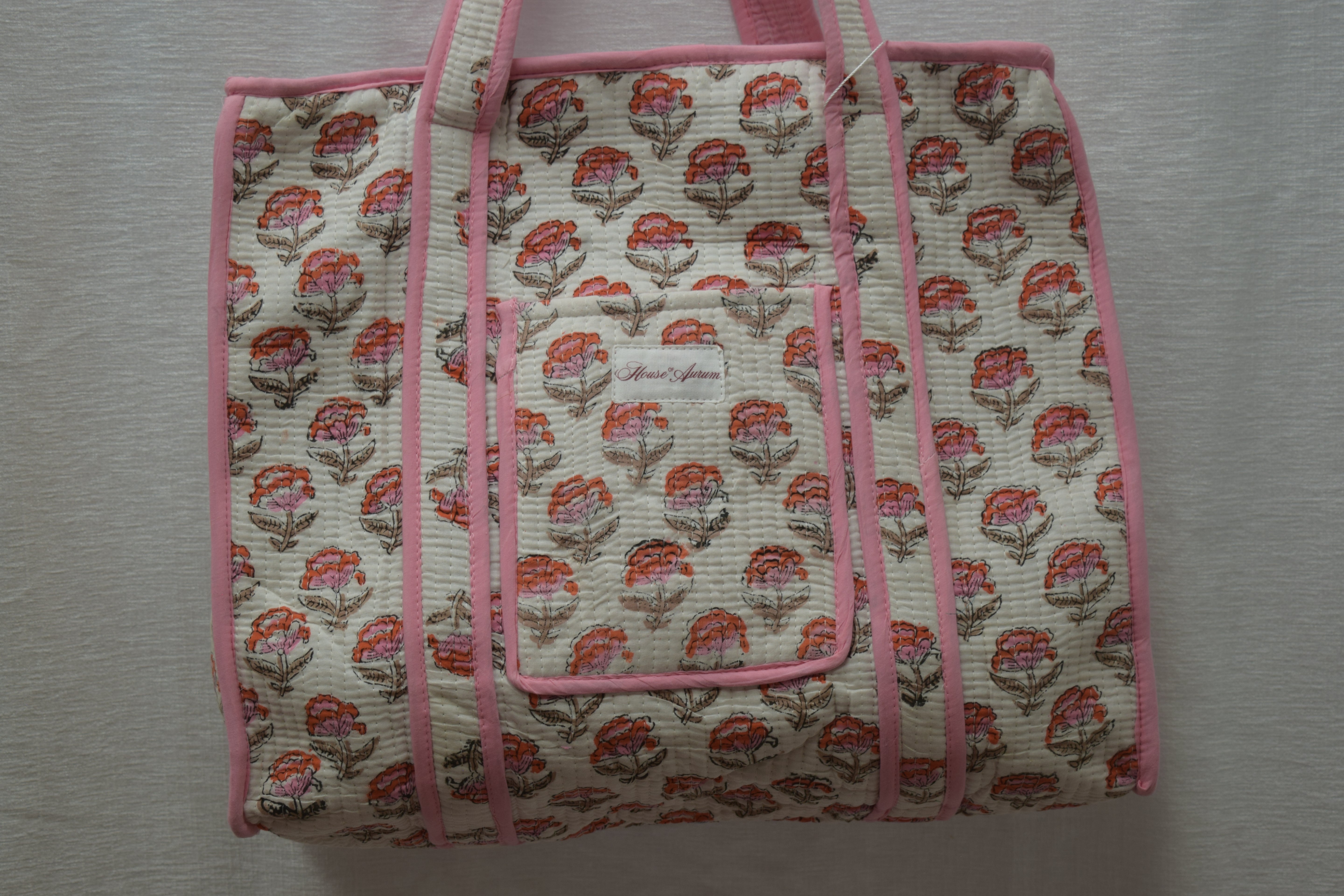 Everyday magic. Our block-printed totes are hand-sewn, double-lined with cotton, and designed to carry it all—books, diapers, laptops, lunch. You name it. Lightweight, soft-structured, and easy to fold down for travel or beach days. Each one is one-of-a-kind and made in teeny tiny batches